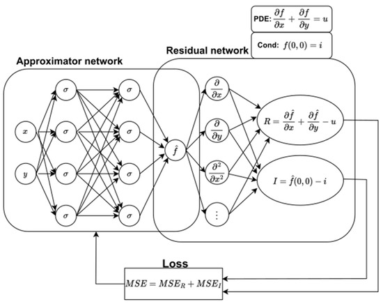 . The weights and biases of the approximator network are trained using a composite loss function consisting of residuals