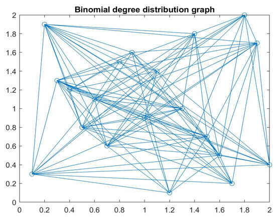 Binomial degree distribution graph (Erdős–Rényi model, Barabasi-Albert model, etc.) Is a random graph whose degree distribution of nodes follows a binomial probability distribution law of degrees k that can be formally defined as follows. Each of the n nodes of the graph is independently connected with another node with probability p or not connected with probability . Let be the fraction of the total number of nodes in a given graph that have k connections with other nodes. This fraction of nodes has the following behavior