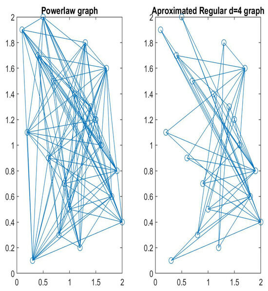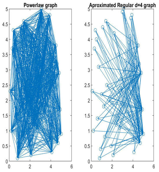 As we could see in the simulations carried out in this article, I tested Chakrabarti’s SIS-type virus propagation models and an SIRS-type model published in [24] through simulations. These simulations were carried out on two topologies with very different structural characteristics in order to observe the impact of the graph structure on the virus propagation behavior in these networks. In fact, what I did was to submit, with the same epidemic model parameter values, two networks with the same number of nodes but one with dense topologies such as the Power-law type network and the other with a regular topology of degree 4 in the nodes. I named these regular topologies of degree 4 as Lattice4. What can be observed is that in the dense topologies, rapid extinction was not obtained while in the regular and sparse topology, rapid extinction was achieved. The topologies on which the simulations were carried out were the Powerlaw-type and the Lattice4-type. When carrying out the simulations in the two mentioned topologies I gave the same value to the parameters of the models to observe their behavior under the same circumstances. Additionally, I varied the epidemiological parameters in the same way in both topologies and I was able to observe the reduction in the spread of viruses in the Lattice4-type graph with respect to the Powerlaw-type graph. In the case of the Lattice4-type graph, a convergence to the state of rapid extinction of the virus was obtained. In The case of the Powerlaw-type topology their behavior under the same epidemic parameter settings, the contagion process converged to a state of generalized contagion of the nodes. It is worth mentioning that I have carried out these same simulations on other topologies and the comparative result between the Lattice4-type topology and the other topologies (Binomial-type and Exponential-type), is similar to the ones obtained with the Powerlaw-type network topology. An interesting spectral property of regular graphs is stated in the following theorem.