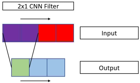 CNNs apply filters to the input data that allow the detection of different features that characterize them. An example of a 1D CNN filter is shown in