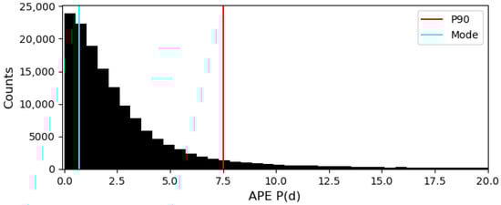 Figure 11) because the total plot of the data is a bit clumpy and could make the results confusing. As shown, the predictions fit correctly to the simulated ones. In addition, as an absolute error could be a bit confusing, the absolute percentage error (APE) was computed from all the predictions and the obtained value were plotted in histograms, in this case, with the whole data (see