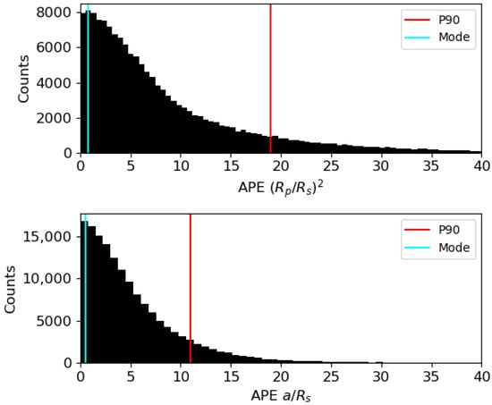 The training process was carried out with a dataset of 650,000 light curves, but splitting 30% of them to validate the training. The training histories show correct performance of both processes (training and validation), where both of them decrease among the epochs without the existence of a huge difference between them (that would suppose overfitting). After training both models, another dataset composed of 150,000 light curves was used to test the results with a set different from the one used for training it (the test dataset). The most visual way to analyze the accuracy of the prediction is by plotting the predicted values against the simulated ones. In addition, some statistics that allow for taking into account the average error with which the CNN predicts the values were computed. More concretely, the mean average error (MAE) and a linear regression  coefficient were considered. For the orbital period,  and  were obtained (predictions made with model 1). For ,  and  were obtained (predictions made with model 2). For ,  and  were obtained (predictions made with model 2). The values of the modes from the histograms computed with the absolute percentage errors (APEs) of , , and  are, respectively, 0.003, 0.69, and 0.38. Apart from that, a set of 10,000 light curves from the test dataset was analyzed with TLS, showing that both models characterize planetary systems from their host star light curves with similar accuracy compared with current algorithms. In addition, both models were tested on real data obtained of CTL light curves from MAST. The results obtained for , , and  (, , and , respectively, of the MAEs; , , and , respectively, of the MAPEs; and , , and , respectively, of ), show that both models are able to characterize planetary systems from TESS light curves with high accuracy, which means not only that they are well trained and thus can be used for characterizing new exoplanets from TESS mission, but also that the light curve simulator is able to mimic with high fidelity the light curves expected from this mission. In addition, our models reduce the computing time and computational cost required for analyzing such large datasets as the ones available from current observing facilities; more concretely, our models take 30 s to complete the analysis of the test dataset (150,000 light curves), which is similar to three times the time required for analyzing a single light curve with TLS. Moreover, with our models it is not necessary to set the priors in which to compute the main parameters, which also increases the time consumption.