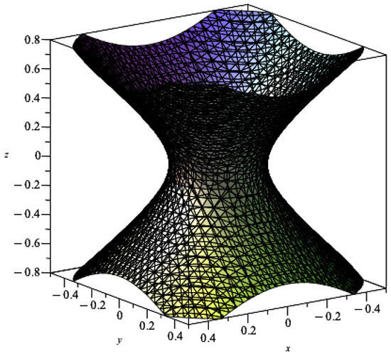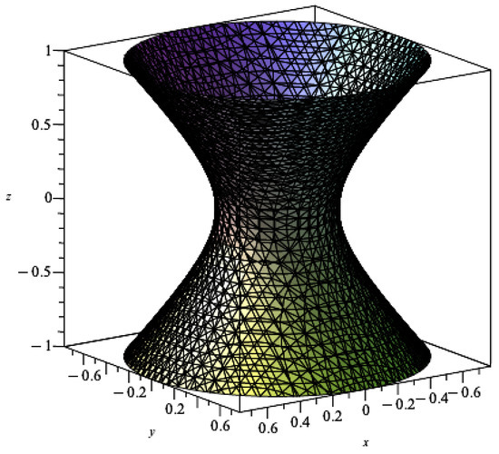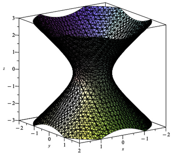 Plotting the surface (10) (see Figure 1, Figure 2 and Figure 3), we see a hyperboloid of one sheet for three different values of a. Notice how the radius changes as a function of the value of a.