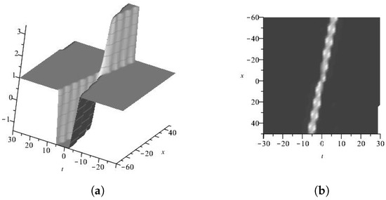 - One wave solutions for (5):In a similar way, we getis displayed in Figure 26 for , (a) is three dimensional with Here, (b), (c), and ( d) exploit the –axis orientation. Additionally, (e) is the contour plot.