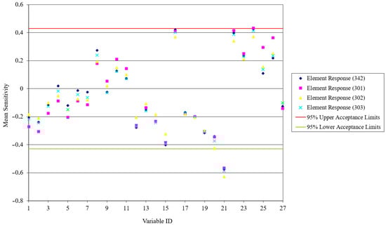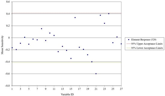 As a primary sensitivity measure, the response sensitivity, denoting the derivative of the mean of the response variable Y concerning the mean of the random variable, is proposed for utilization. Subsequently, the screening of insignificant random variables from the extensive set of input random variables can be executed by applying 95% confidence limits to this sensitivity measure. These limits are suggested as the acceptance criteria for defining the most influential random variables for subsequent methods.