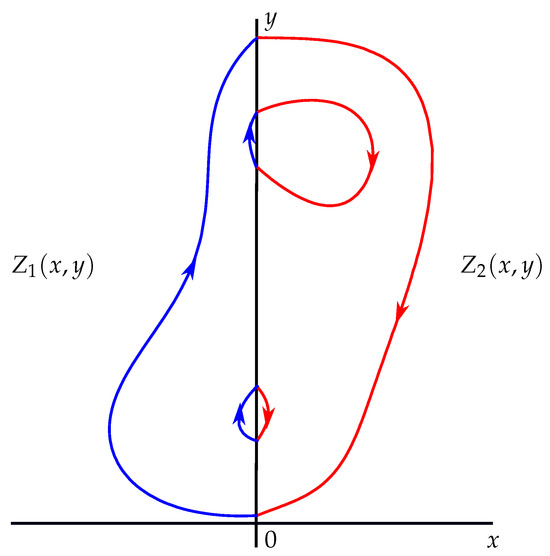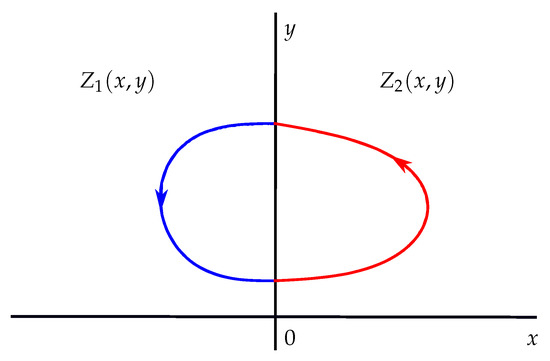 respectively. Of course and are first integrals of systems (13) and (14), respectively. For this discontinuous piecewise differential system, system (11) provides the system