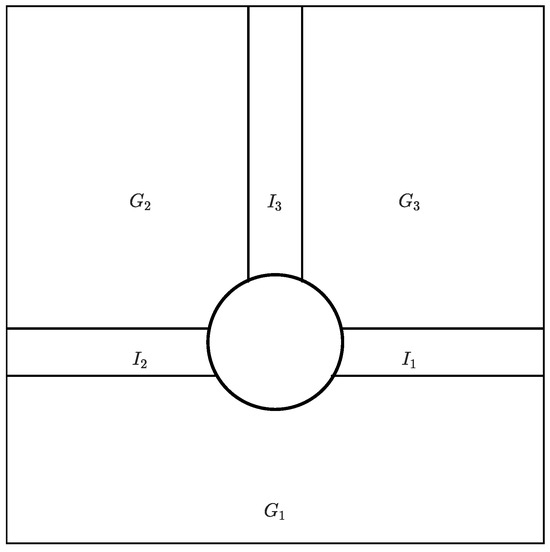 Since system (1) is composed of several parts of boundaries, that is, , we have to apply the regularization method to each part separately. Notice that the boundaries lose smoothness at , or the point , so this point needs additional consideration, which is explained by specific examples in the next section. Here, we only present the formula for regularizing system (1) at the boundaries , , and .