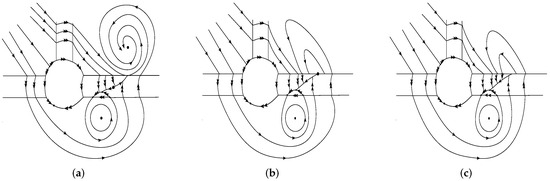 Figure 7. Phase portraits of the regularized system . Generated by (a) , (b) , (c) . - When , on the circle, the following holds: