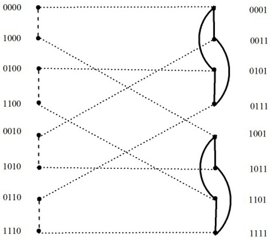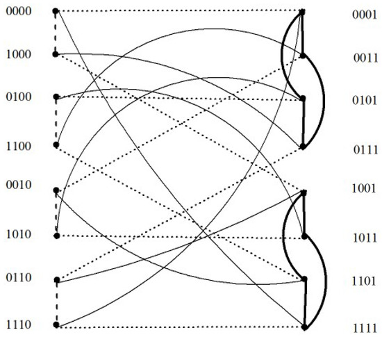 Figure 1 shows an example of . Based on the concept of , Qi et al. [16] put in a network called an exchanged folded hypercube . and have the same vertex set. The edge set of consists of and , where