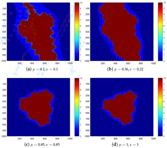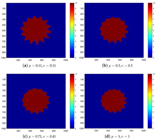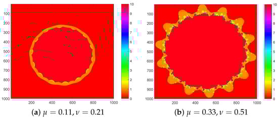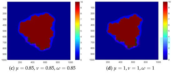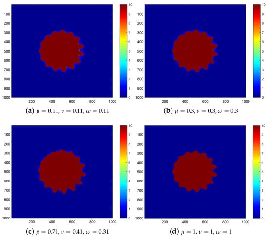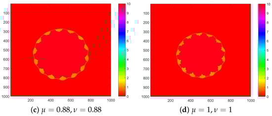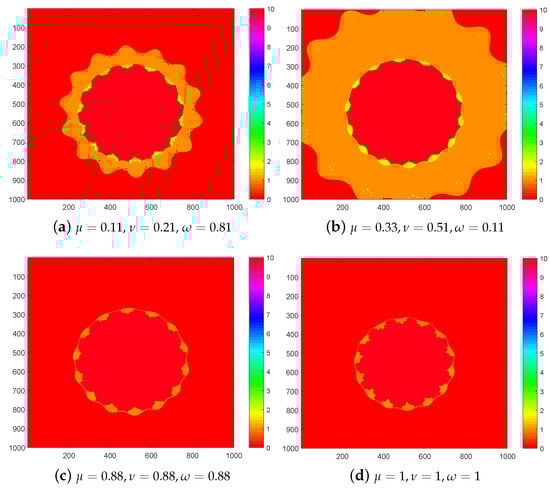 Figure 8. sets of with . - For Figure 9, we input , and we perceive that a clear color variation is involved. Figure 9c covers more area as compared with Figure 9d.
