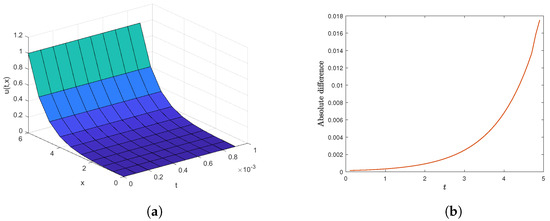 (a) Exact solution of the linear ADR equation. (b) Absolute error obtained by the HUPFD method.