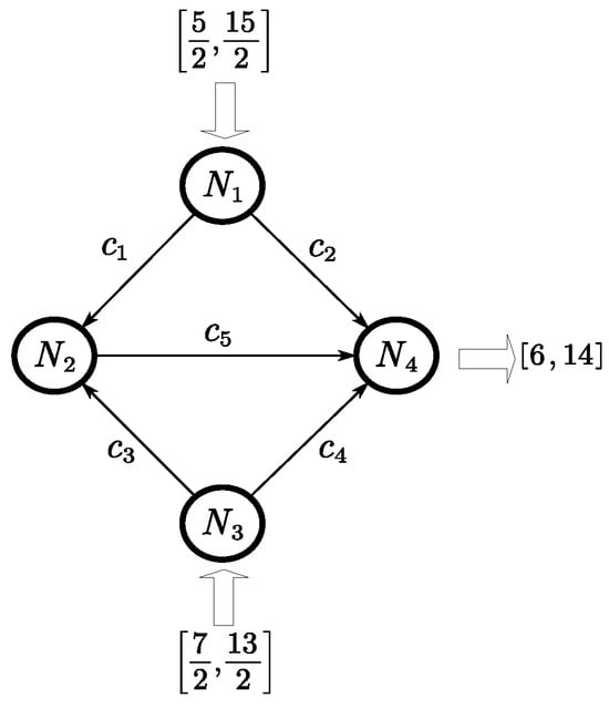 In this section, an example is provided to demonstrate the application of the obtained theoretical results. The example has the network topology depicted in Figure 1. Table 1 summarizes the constituent paths of each OD pair.