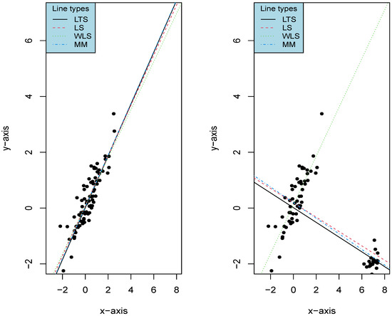 - Rousseeuw, P.J. Least median of squares regression. J. Amer. Statist. Assoc. 1984, 79, 871–880. [Google Scholar] [CrossRef]