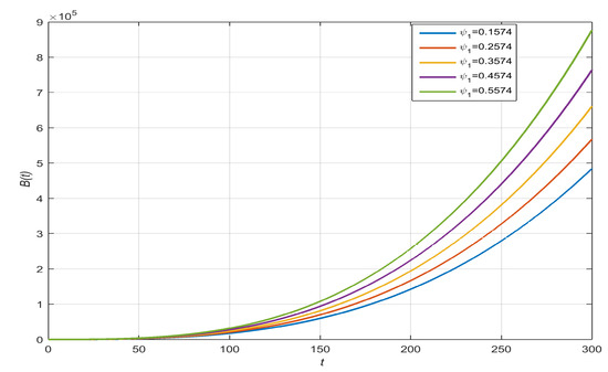 Figure 13 shows that the concentration of COVID-19 in the environment falls as the parameter decreases. This suggests that there is a positive relationship between viral concentration and . Stated differently, a decrease in the amount of COVID-19 present in the environment is associated with an increase in the value of .