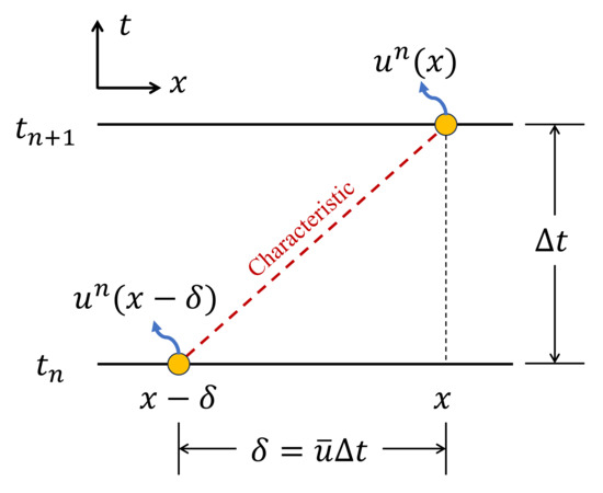 Regarding temporal discretization, we use the Crank–Nicolson method (CNM) to transfer the equation into a finite difference form along the characteristic firstly and then adopt Taylor expansion and convert it into an explicit semi-discretization scheme. No extra parameter is introduced to ensure computation convergence.