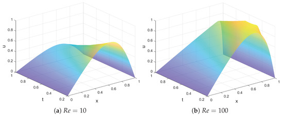 Example 6. Consider the following soliton solution of Burgers’ equation (Equation (1)),where the constants α and β are related to the amplitude and width of the soliton, respectively, μ represents the constant speed of the soliton, . In this problem, we use the coefficients