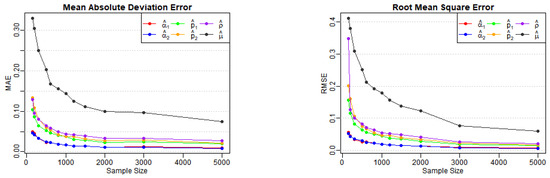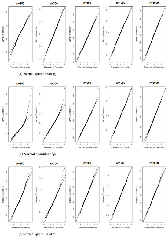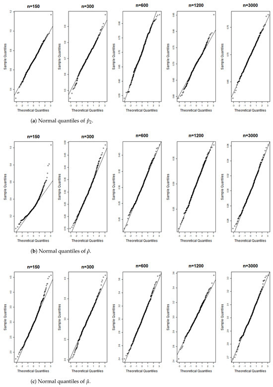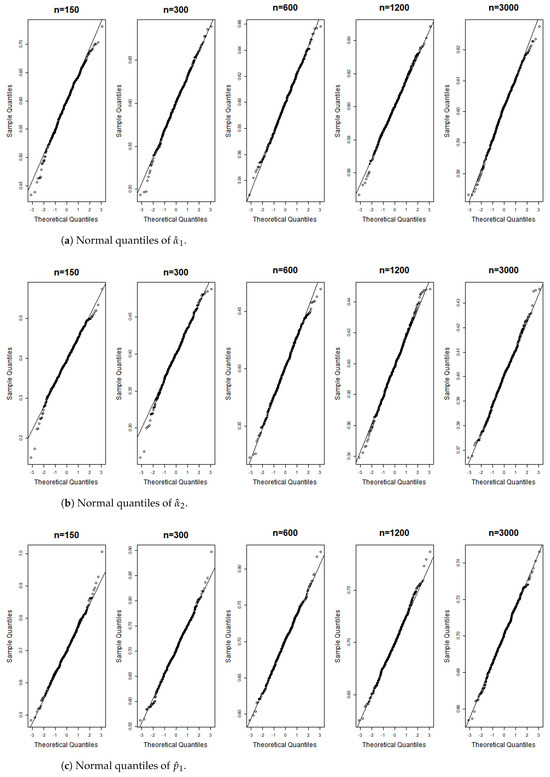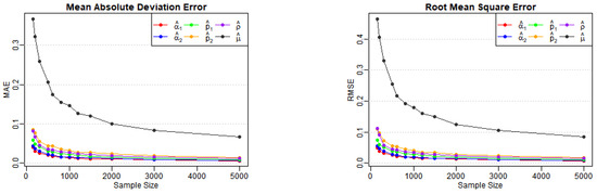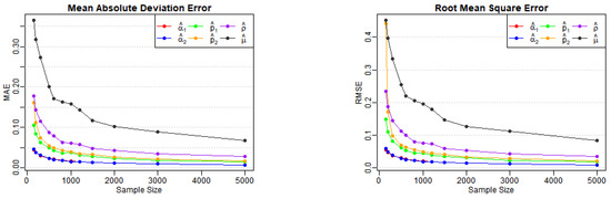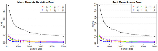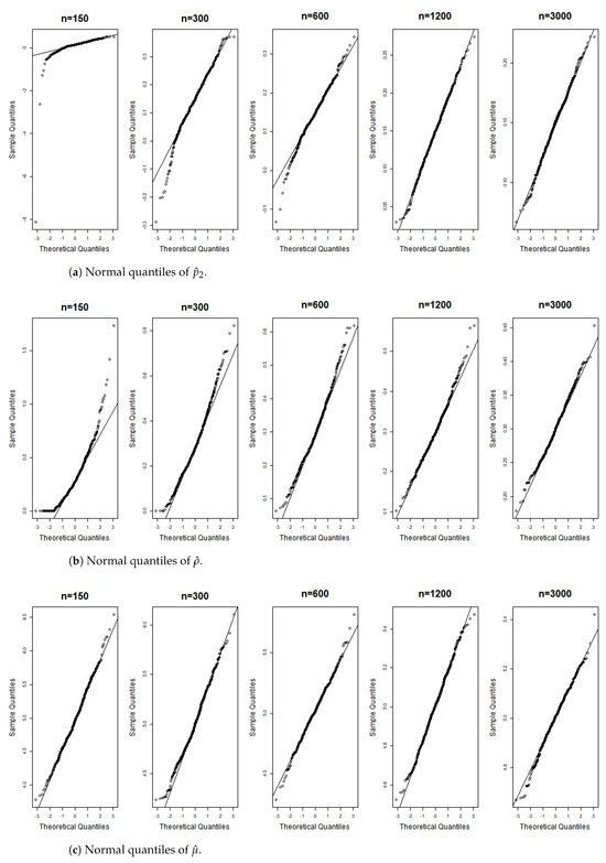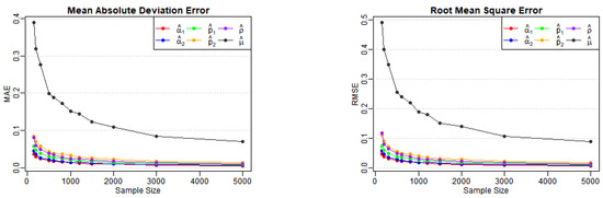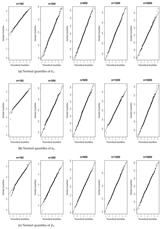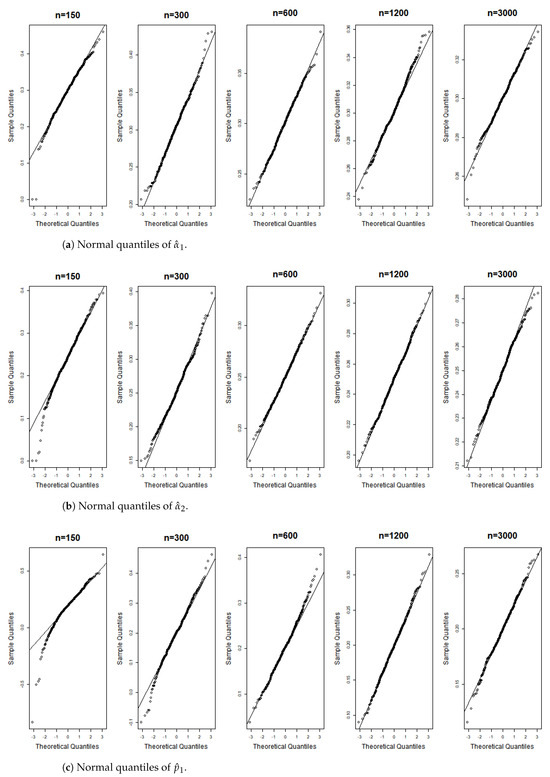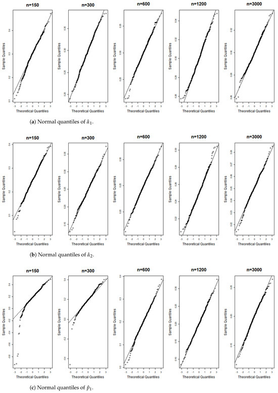 These terms represent the components of the matrix . According to the correlation structure of the model and the properties of the matrix , all terms in the equation are nonnegative, with the first and last terms being strictly positive. Equation (A6) indicates that , implying We can now apply the theorem presented in [26], thereby completing the proof. □