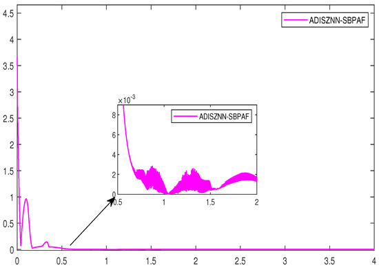 Based on this observation, we innovatively propose a stable version of the ADISZNN model: When the error of the ADISZNN model using SBPAF approaches zero (i.e., reaches the order of ), we transition the model to use LAF. This transition alters the calculation and convergence of , transforming the ADISZNN-SBPAF model into the ADISZNN-LAF model. The convergence performance of this approach is illustrated in the Figure 8, Figure 9 and Figure 10.