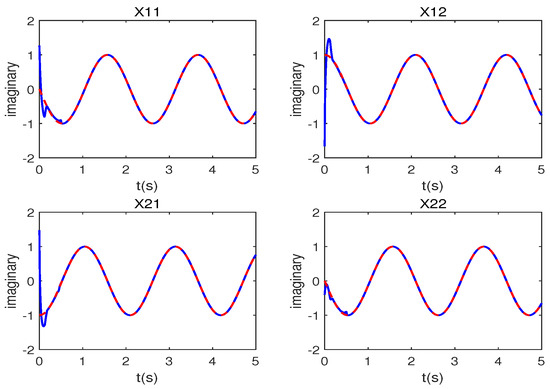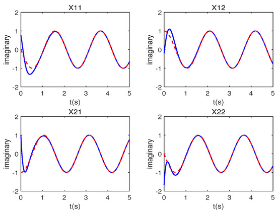 where is the expansion of the complex matrix , and and are, respectively, the real and imaginary parts of the given matrix . Similarly, and are, respectively, the real and imaginary parts of the state solution , where the imaginary unit is denoted as .