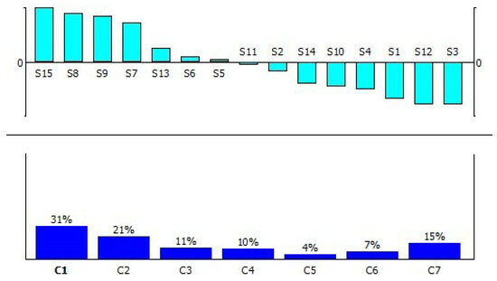 In PROMETHEE I method, preference functions are made use of to assess alternatives in relation to numerous criteria and determine the relative weight of each criterion. For every criterion, the procedure creates pairwise comparisons between the options, generating preference indices that show what choice has greater appeal over the others. A global preference assessment is developed through putting together the preference indices for every alternative across all criteria. PROMETHEE I method simply takes into account the direction of preferences, or whether one alternative is favored over another, without taking into account the intensities of preferences. It performs well in scenarios once the significance of each of the choices is the only aspect that is crucial, not the extent of preference differences. Figure 5 displays the ranking of the alternatives according to their score values which vary from −1 to +1. Red colour represents the negative outranking flow from 0 to and the green colour represents the positive outranking flow from 0 to .