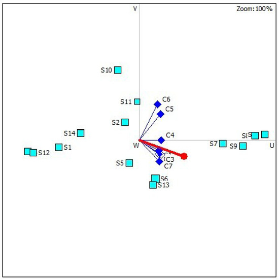 PROMETHEE GAIA enables decision makers with the capability to examine trade-offs, sensitivity analyses, and the influence of criteria weights on the final rankings. By integrating the analytical skills of the PROMETHEE technique with the visual insights presented by the Gaia visualization tool, PROMETHEE GAIA empowers decision makers to make more accessible and informed decisions in difficult decision-making scenarios. Figure 9 demonstrates the 3D representation of the preference of the alternatives considering its criterion weight. A k-dimensional space can be employed to describe the information associated with a decision problem that has k criteria. These data are projected onto a plane so that as little information as possible is lost, providing the GAIA plane. The red color line indicates the direction of the decision.