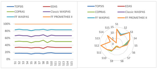 Table 8 presents a comparison between the FF PROMETHEE II approach and other methods that have been mentioned. The results indicate that FF PROMETHEE II is compatible with the other methods that are currently being used. Furthermore, the PROMETHEE II method can produce more detailed and precise outputs as it may be blended with other methods. It is not the only strategy that can be used to enhance decision making. Sensitivity analysis, which examines how well results adhere to modifications in preference functions or criteria weights, can be carried out with this method to get insight into the consistency of the selection rankings. The concept of transparency, versatility, and sensitivity to decisions are characteristics that are beneficial in a variety of decision-making scenarios, and PROMETHEE II delivers a systematic approach to MCDM.