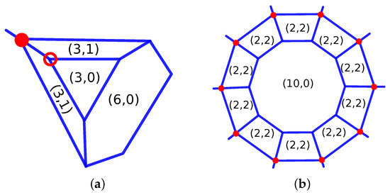 To do so, we have written a computer program (available from zenodo), which when given values for and , scans all the possible combinations of polygons made out of type 1 and type 2 nodes, thus considering polygonal faces such that , with a maximum of 300 faces.