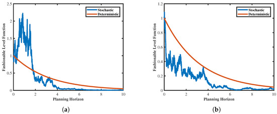 Fashion level function. (a) Stochastic fashion level. (b) Determinstic fashion level.