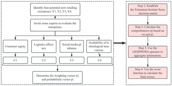 The traditional retail industry is experiencing a bottleneck due to advancements in technology and increased consumer demand. The service economy and experience economy have been valued and developed. Adapting to digital consumption demand and developing relevant business strategies has become a critical problem [1]. A new retail system characterized by consumer-centered, data-driven, and intelligent services has emerged in this context. The new retail model is fast gaining popularity due to its simplicity and security, making it a significant player in the sector [2]. In today’s retail landscape, business model innovation is crucial for enterprise growth. Traditional e-commerce platforms have adapted to the development trend of new retail, combined with artificial intelligence and Internet of Things technology to explore new retail models. Numerous retail consumption scenarios have emerged in an endless stream. New retail reconstructs the value order of business entities. With physical stores, e-commerce, and mobile Internet as the core, community retail as the front end, Internet logistics as the middle end, and big data and financial innovation as the back end, business model innovation is realized through online and offline integration [3]. Typical representatives are Amazon, JD.com, Hema Fresh, and so on. Some scholars have studied these new retail platforms by building models or frameworks [4,5]. Evaluating new retail enterprises usually involves a variety of evaluation attributes, making it a multi-attribute decision-making (MADM) problem. The market environment faced by new retail enterprises is complex and changeable, and corporate data are often uncertain and ambiguous (market feedback, competitor behavior, etc.). As a result, it is impossible to evaluate them directly using typical precise decision-making approaches, and fuzzy set theory can mitigate the impact of single criteria and subjective preferences.