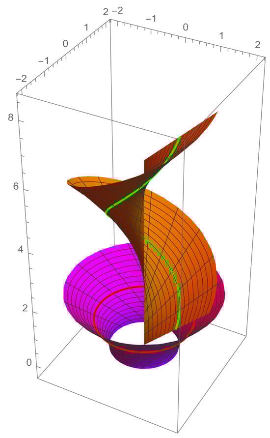 Now, by taking (23), we see that in the case of , we obtain helicoids