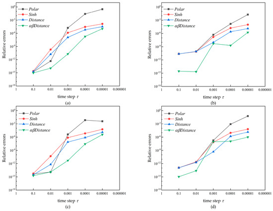 As revealed by the analysis in Table 7, significant calculation errors are produced by both the Gaussian quadrature method and the polar coordinate transformation when the value of τ is exceedingly small, making these methods unsuitable for such a condition. The analysis indicates that calculation accuracy is significantly improved by the sinh transformation and the new distance transformation. However, superior performance is demonstrated by the new distance transformation and the (α, β) distance transformation. Moreover, the proposed method achieves optimal results compared to all other methods.
