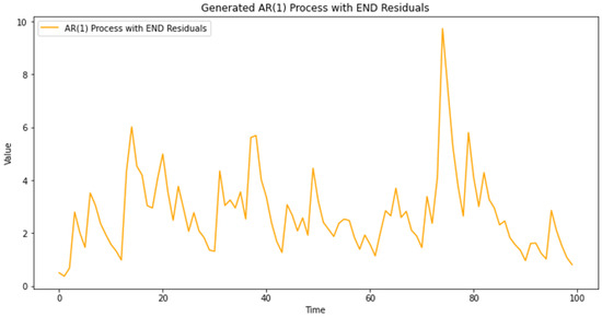 The methodology of this study involved generating a dataset that represents an autoregressive process AR(1) with residuals transformed into Extended Negative Dependence random variables (END) using the sine function, in Figure 1 and Figure 2 below.