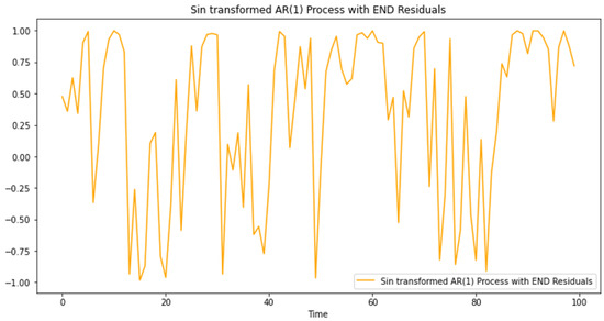When we proceed to verify END properties for the transformed residuals, we find that the condition, for all k, , is not satisfied. Therefore, we apply an additional transformation using a sine function, Figure 3 below.