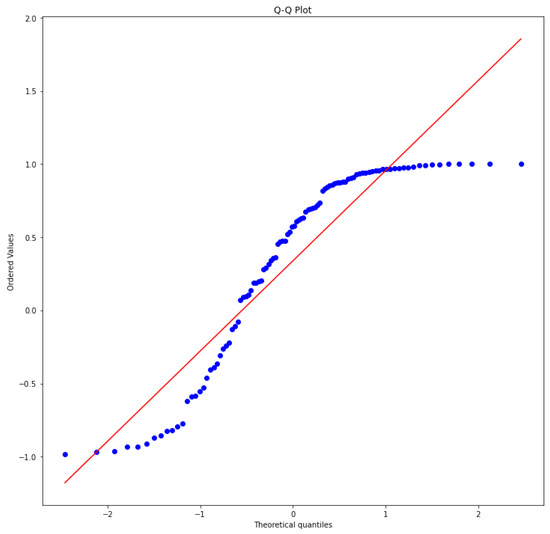 Before verifying the condition above for this final transformation, we ensure that the sine-transformed data remain Extended Negative Dependence random variables (ENDs) through moment conditions and the Q-Q plot in the Figure 4 below.