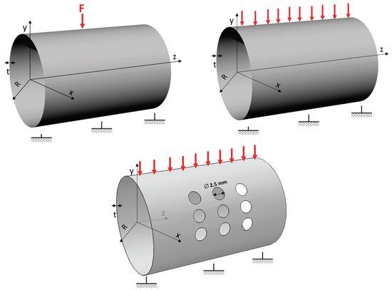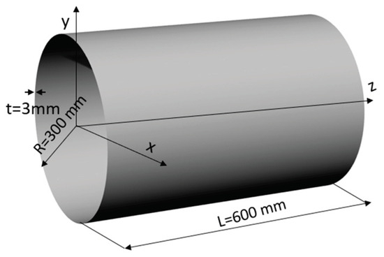 The geometry of the 3D cylindrical shell pipe studied is shown in Figure 2.
