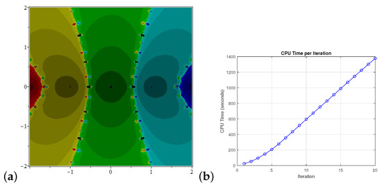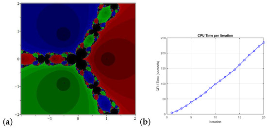 (a) is the basin of attraction for and (b) illustrates the CPU time to produce the basin of attraction.