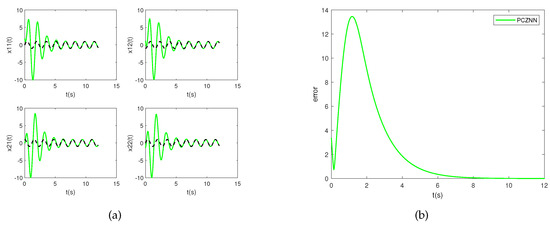 Next, the time derivative of in Equation (2) is computed to obtain . Substituting Equation (2) and into Equation (3), the PCZNN model proposed by Xiao et al. [32] to solve the TVMI problem is derived as follows: