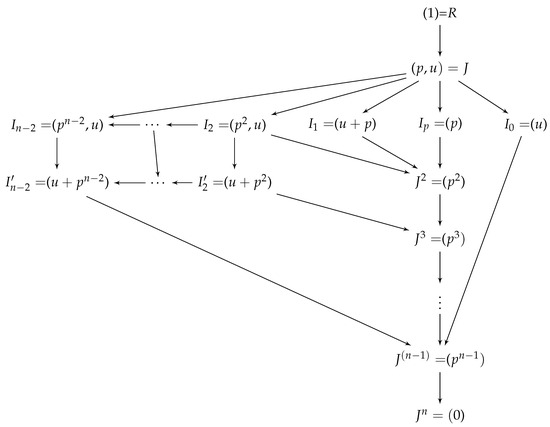 Consider a proper ideal of R, I. As R is local, J represents the only maximal ideal of R; hence, This indicates that I is generated by a combination of p and u and their powers. Given that and we have where Thus, we only consider ideals generated by and u and their combinations. In other words, without raising J to a power, there are only n choices for namely