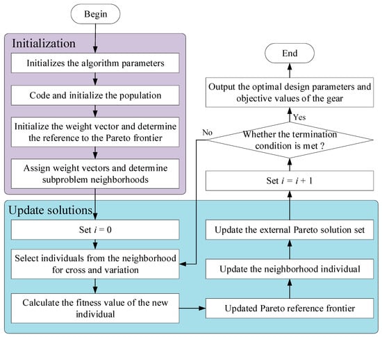 The overall flowchart of the algorithm is shown in Figure 5. The detailed steps of the AMOEA/D algorithm are as follows:
