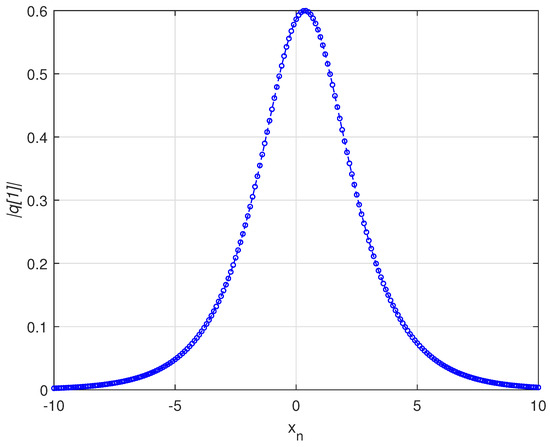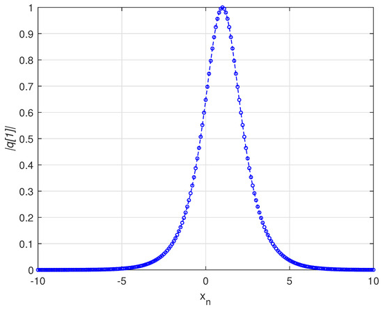 Thus, the single-soliton solution on the q-discrete time scale can be obtained, as follows: