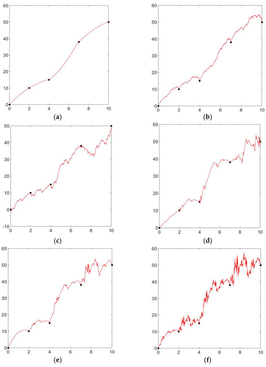 Rational cubic fractal interpolation functions with the change in scaling factor. (a) Rational cubic fractal interpolation with scaling factor (b) Rational cubic fractal interpolation with scaling factor (c) Rational cubic fractal interpolation with scaling factor (d) Rational cubic fractal interpolation with scaling factor (e) Rational cubic fractal interpolation with scaling factor (f) Rational cubic fractal interpolation with scaling factor .