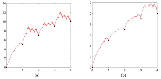 The coefficients in this expression can be calculated using conditions given in Equation (2), which is an operation similar to calculating them from the relation . According to [12], for a differentiable fractal interpolation function, the scaling factor is selected as . For the construction of the C1 zipper-rational cubic fractal interpolation function, we need the following interpolating conditions: