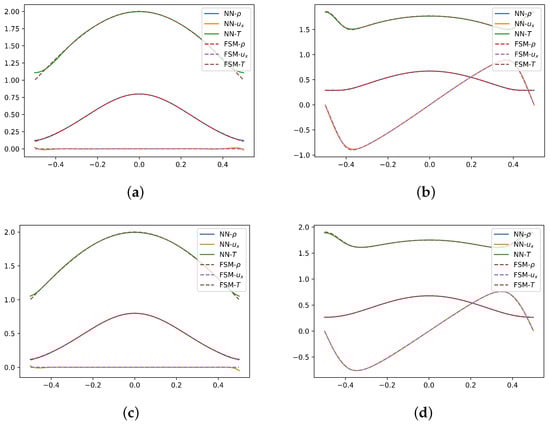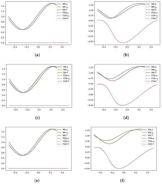 Figure 5. All of them are consistent with the reference. The FSM with the spatial mesh is adopted as the reference to validate the accuracy of the numerical results. Three macroscopic variables, including