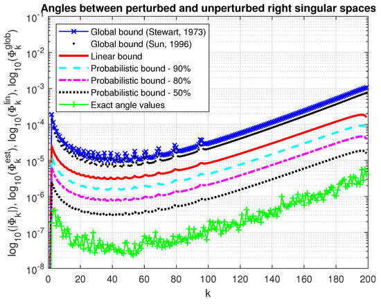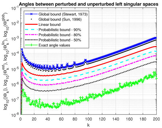 of the maximum angle between the perturbed and unperturbed invariant subspaces of dimension k. In the same way, from (35), we obtain a probabilistic asymptotic estimate