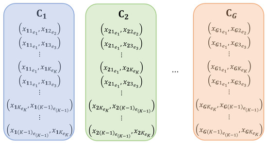 An application with the transportation attribute and attribute levels is presented in Section 3. In general, if we combine the choice sets, we can define W, where such that for all ; . The G choice sets are illustrated in Figure 1. In each of the choice sets, there are BW choice pairs. The experiment is conducted so that all respondents must choose from each of the G choice sets. Each choice set maps into the corresponding profile. In building inferences based on the utility functions of the choice pairs over time, challenges are due to the distributional assumptions and the ordinal ranking (importance) in the choice pairs.