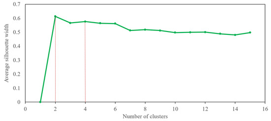 - Shahapure, K.R.; Nicholas, C. Cluster quality analysis using silhouette score. In Proceedings of the 2020 IEEE 7th International Conference on Data Science and Advanced Analytics (DSAA), Sydney, NSW, Australia, 6–9 October 2020; IEEE: Piscataway, NJ, USA, 2020; pp. 747–748. [Google Scholar]