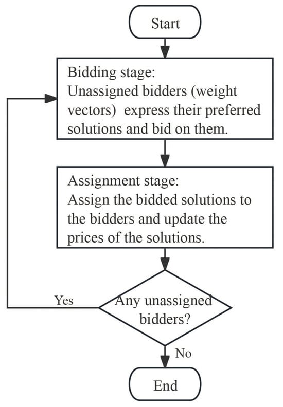 We iterate the auction process including the above two stages until each weight vector is assigned a solution (Algorithm 5, lines 4–20). It can be predicted from (
