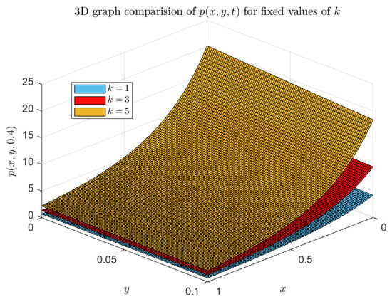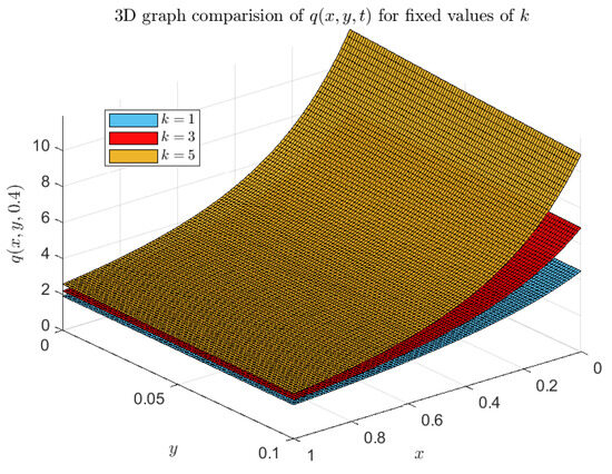 Let be a function of three variables, which can be expressed as . The differential transform’s characteristics can be used to determine the representation of the function .