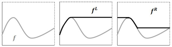 Figure 2. Examples of and . - and , where ≤ is the usual pointwise order in the set of functions ( if and only if for all ).