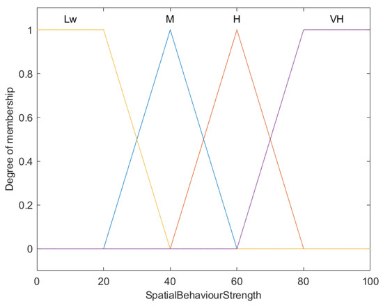 The LVs are constituted by linguistic labels that allow the association of linguistic meaning to subintervals in the domain of each variable. A variable can have one or more linguistic labels; mathematically, these are represented through membership functions and consequently by fuzzy sets.